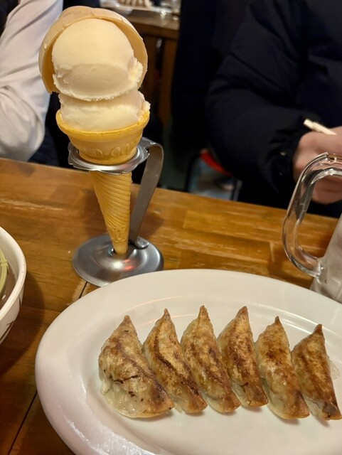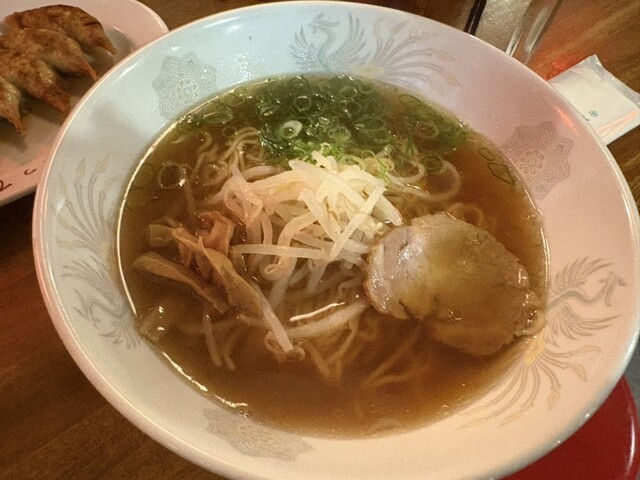餃子は軽い揚げ餃子、ラーメンは醤油味。