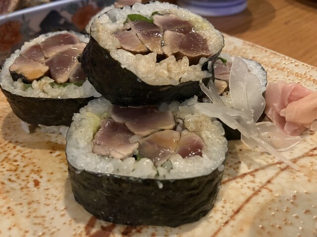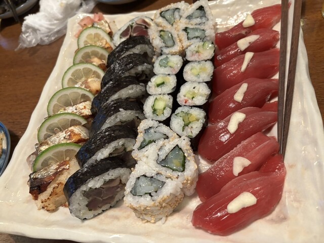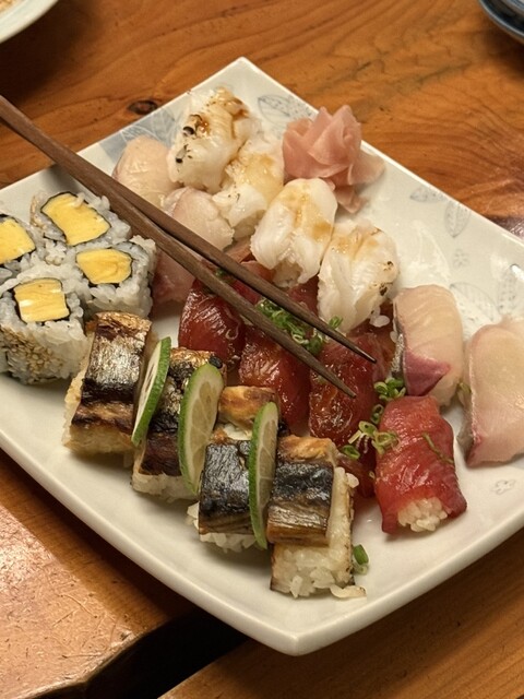 の天ぷら、土佐巻きや、焼きサバのお寿司、