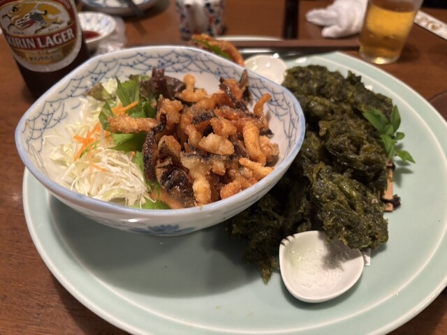 鰹のタタキ、ウツボの天ぷら、四万十のあおさ