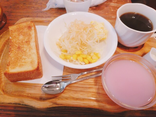 朝食に行きました。モーニングは1種類ですが450円です。モーニングの本場の名古屋でも いま時この値段は珍しいと思います。 ハーフの厚切りトースト、サラダ、桃のゼリー、そしてコ... 詳細を見る