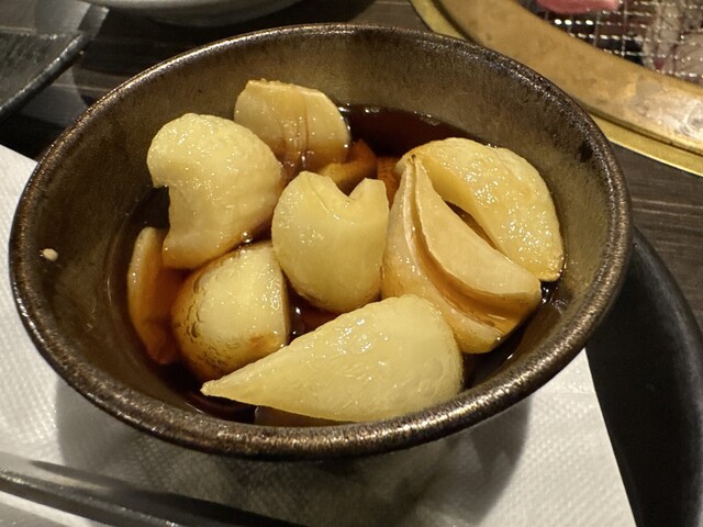 きゅうりキムチ・にんにくオイル焼き・長芋のわさび漬け・冷やしトマトのクリームチーズのせ・旨辛スンドゥブ