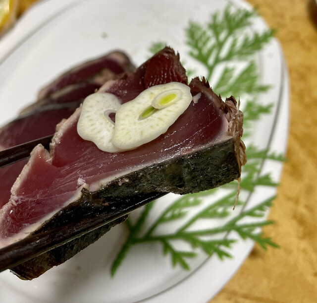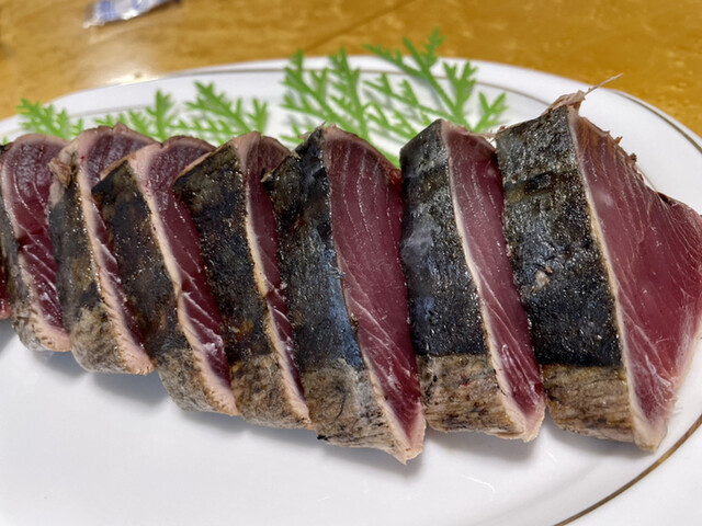 高知らしくニンニクと共にいただきますが、肉厚で臭みのない鰹は絶品。割とあっさりとしており、いくらでも食べられそうです。さらに...