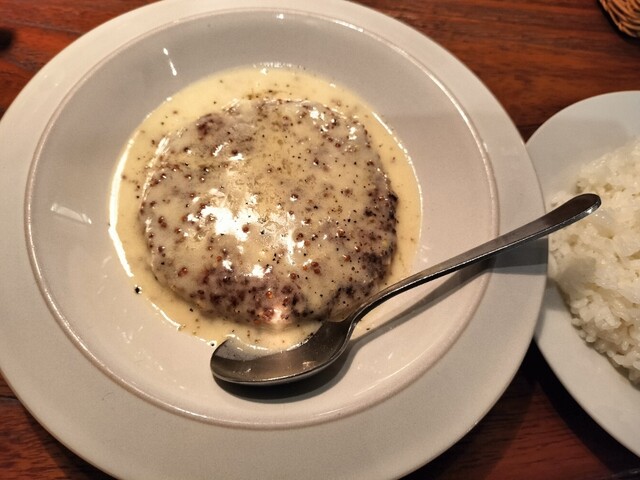 お昼時に訪問。満席で1組待ち。人気店★ 入り口にメニューが書いてありました。 バター醤油のハンバーグ、Bランチにしました。 お店の雰囲気は落ち着きのあるゆっくりできそうな... 詳細を見る