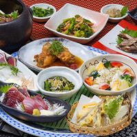 旬の食材やたたきなど季節のメニューをたっぷり堪能できる限定宴会メニューです。 お鍋や土鍋ご飯もお召し上がりいただけるボリューム満点の贅沢コースで明神丸の季節料理をお楽しみ頂けます。皿鉢は2回に分けてご提供させていただきます +1500円で2時間飲み放題付きに変更も可能です。 +1500円で飲み放題追加可能。