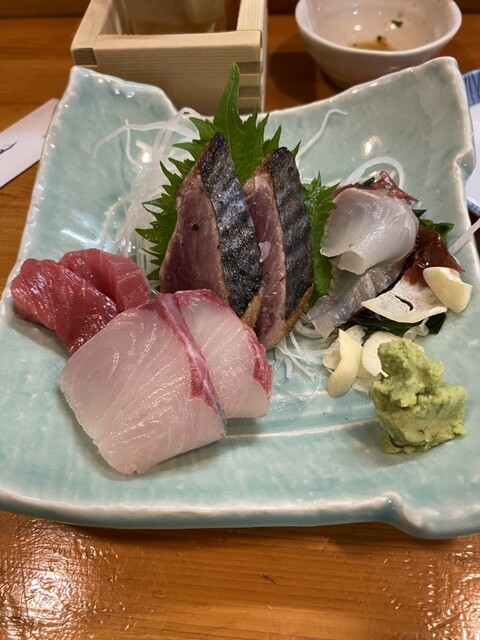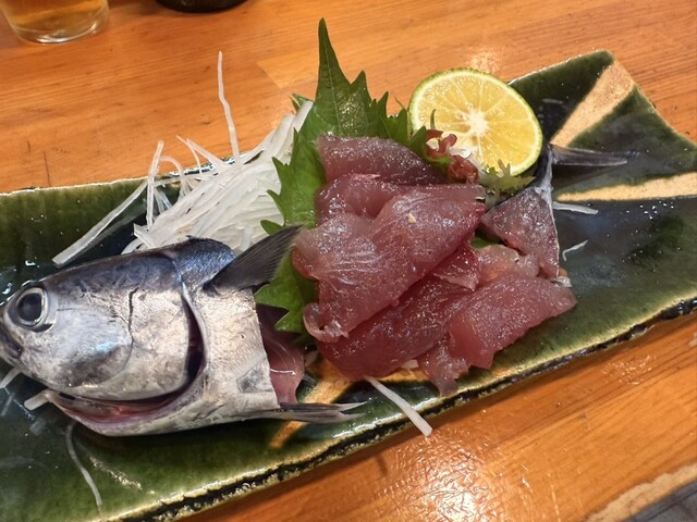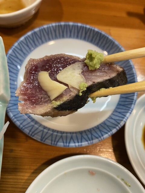 今夜は懐かしい店で一杯。 まずは生ビールで乾杯。 お通しは鰹のハンバーグ。 これは肉感のある鰹に軽く胡椒が効いていて良いつまみになる。 そして鯖煮とポテサラ、 刺身のおまかせ4種盛り。 そこに今日は獲れたてのビリ鰹が入っているので、それを盛り込む事も出来ますよ。と愛想の良いサービスの... 詳細を見る
