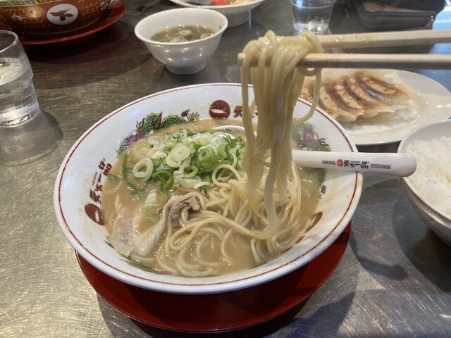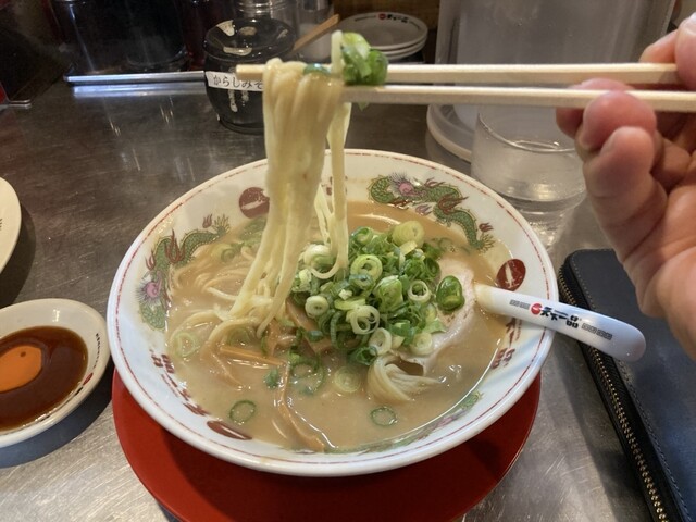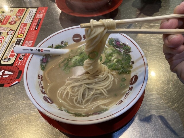 博多豚骨の細麺も好きですが、中太麺もいいですね‼️