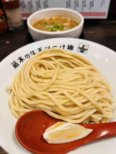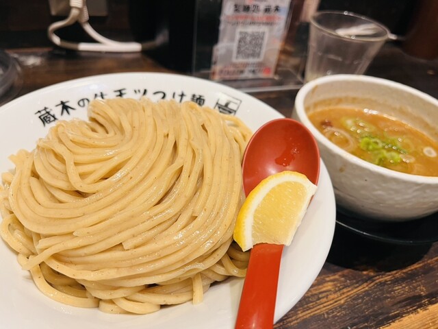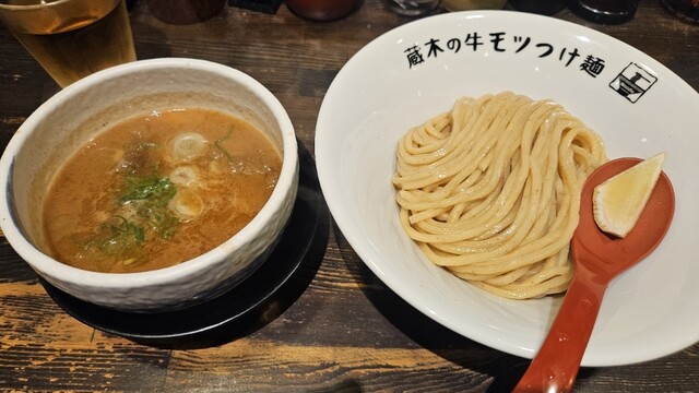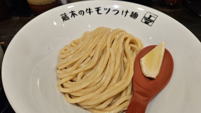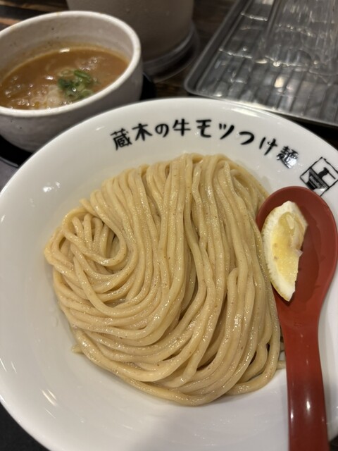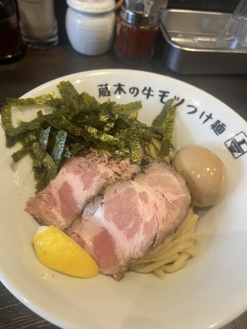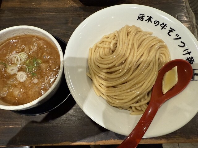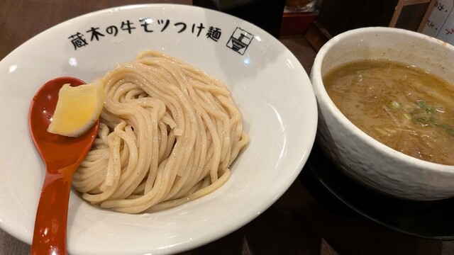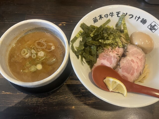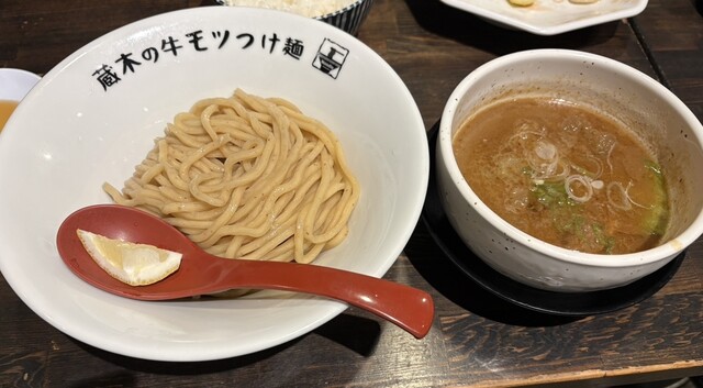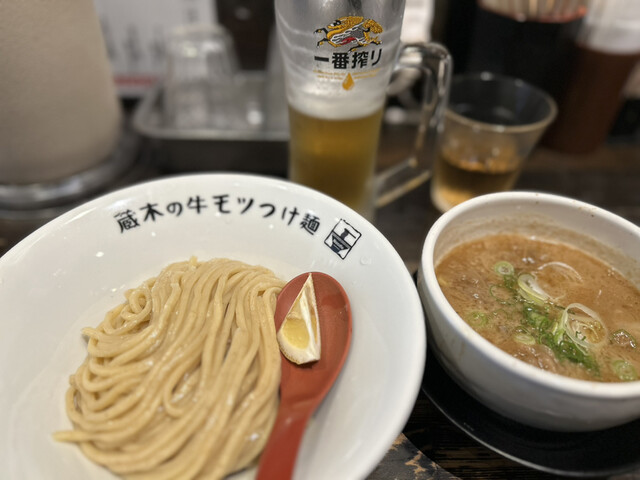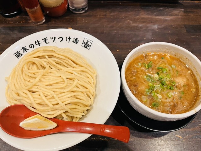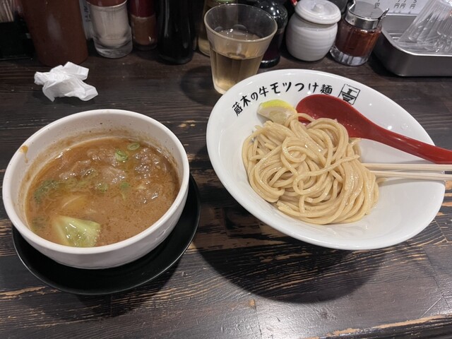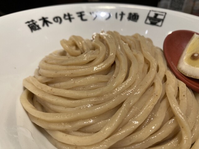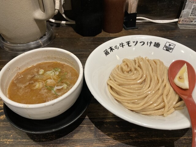 牛モツつけ麺が有名なので、モツ2倍!特盛りで!