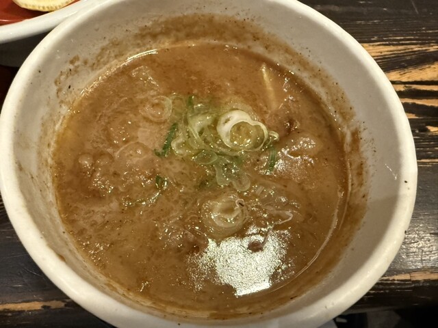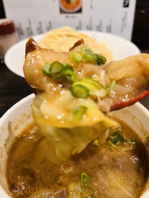 特製モツつけ麺(1250)をオーダー。つけ汁には小さめ...