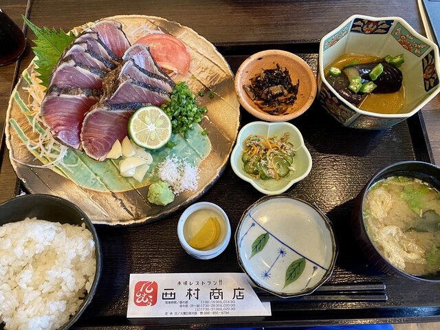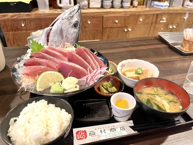 バラエティ豊かな、土佐の新鮮な海の幸/山の幸をボリューム満点の定食メニューで堪能できる西村商店!!独自のルートで仕入れる新鮮な魚介は必見!!季節限定メニューも多く、バラエティ豊かな豊富な定食メニューは圧巻の品ぞろえ。ドリンクも豊富に取り揃えており、ノンアルコール類はもちろん、高知の地酒をはじめとするアルコール類も充実。様々なシーンでよっとうせ♪