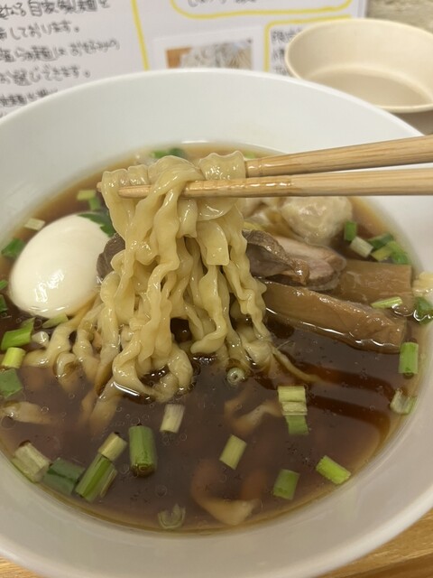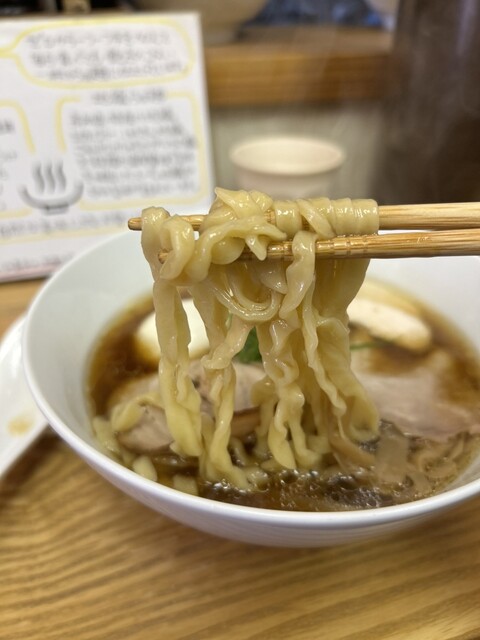 ランチの時間に行き、醤油ラーメンを注文しました。麺の種類はもち姫をメインとしたモチモチとした太いチもみ麺と、春よ恋をメインとした歯ごたえとシルキーさを兼を備えた細麺の特徴の異なる自家製麺、2種類から選...