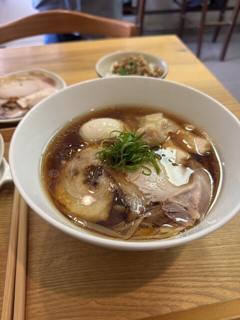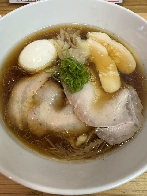 銀シャリのYouTubeで取り上げられた店。日曜の11:40到着で6人待ち。並んでから着丼まで約30〜40分。店内はかなり狭く、回転率は思ったよりいい。塩より醤油、手もみ麺より細麺のほうが個人的には美...