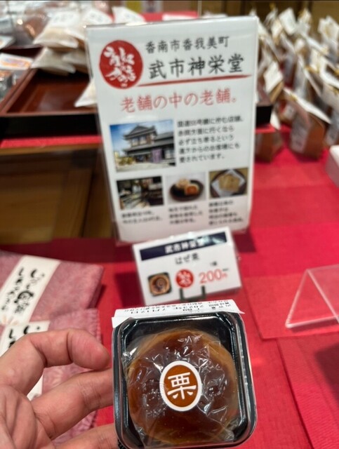 お店は国道55号線沿い、香南市の香我美駅の近くにあるそうです。このお菓子は道の駅で購入しました。 はぜ栗200円税込を購入。 栗が丸ごと1個入っています。しっとりとしたおまんじ... 詳細を見る