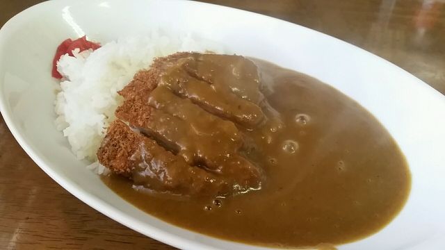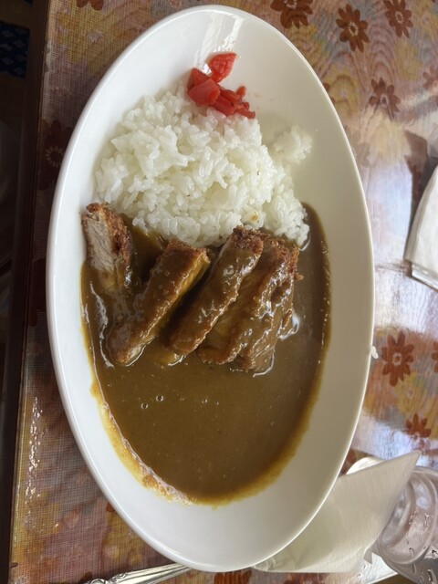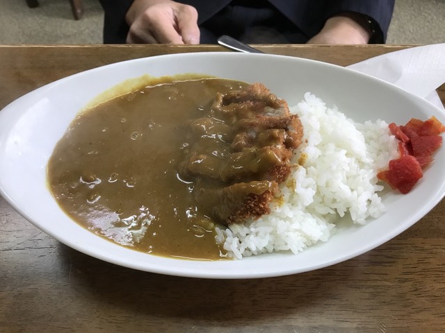 程なくして登場のカツカレー!楕円形の白いカレー皿に、たっぷりのカレーと厚めのカツ!絶対美味しいやつや〜!!