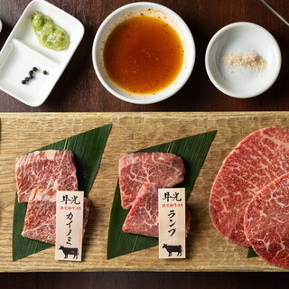 큐슈산 흑모 와규, 세련된 다양한 적육을 비교하며 맛보세요. 조금 특별한 어른의 사치.