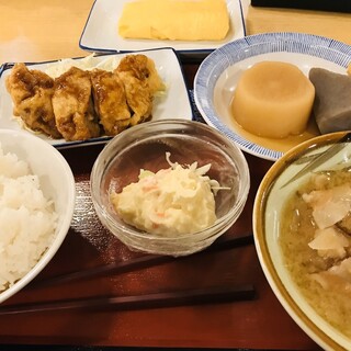 작은 반찬 3개와 미소국이 함께 나오는 일일 정식은 점심과 저녁 모두 즐길 수 있습니다. 매주 토요일에는 1잔 500엔으로 5종류의 술을 즐길 수 있는 '주말 술'이 열립니다!