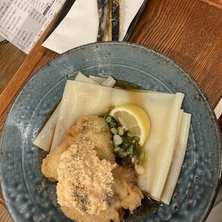 아게타치 우동 & 창작 요리를 만끽하세요. 데이트나 연회에도 적합한 가게