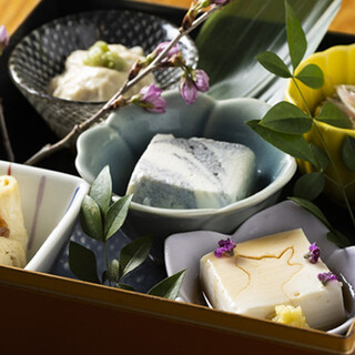 교토의 전통 가옥에서 따뜻한 유두부와 인기 있는 유바 냄비, 생부가 포함된 가이세키를 제공합니다.