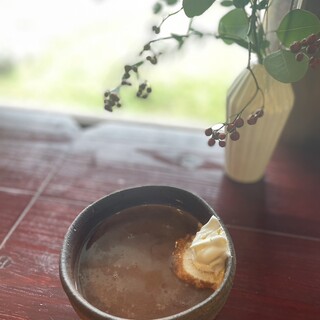 신주쿠에서 일본식 아침식사. 말차와 주먹밥의 일본 모던 카페