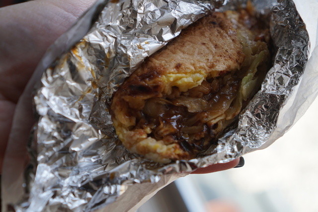 아이치현 이치노미야시 '우마이야' 『오코노미야키』 ・무려! 가격은 150엔 ・아이치 스타일, 두 겹으로 접는 타입 ・계란, 양배추, 튀김가루, 홍...자세히 보기