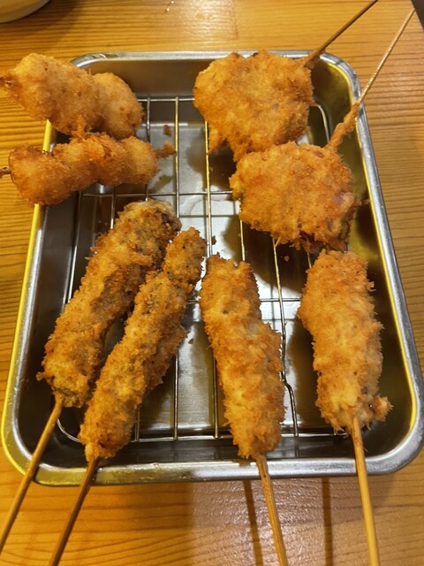 안주 꼬치튀김 홍생강 베이컨 오징어 치즈 셰프 추천 5개 모듬 명물 도테야키 튀김 두부 생맥주 아사히 슈퍼드라이 다주세 냉소자세히 보기