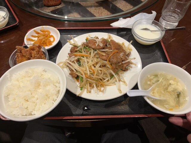 일일 특선으로 돼지고기와 마늘싹 볶음 800엔과 산라탕면 880엔을 주문...