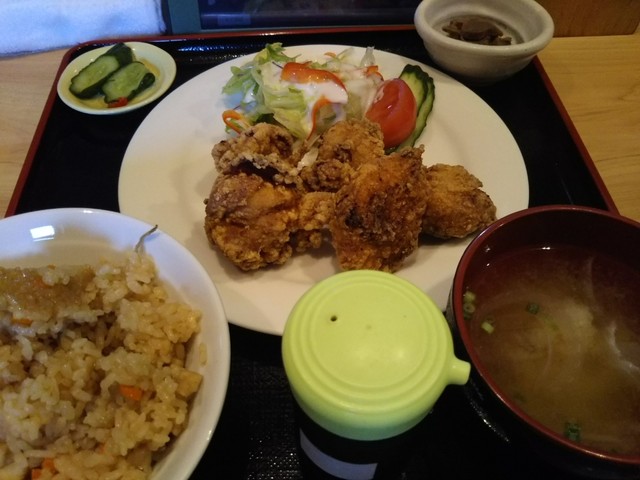 福井渕町의 중심에 위치한 저희 가게는 다양한 음식 메뉴로 여러분을 맞이합니다. 무엇보다도 메인은 어린 닭의 튀김입니다. 후쿠오카의 유명 가게에서 전수받은 튀김은 질 좋은 어린 닭을 사용하여 겉은 바삭하고 속은 부드럽습니다. 특제 튀김 소스와 유자 후추로 즐겨보세요. 튀김뿐만 아니라 닭꼬치와 치킨 스테이크, 신선한 생선 회 모둠 등 다양한 메뉴가 준비되어 있...습니다!