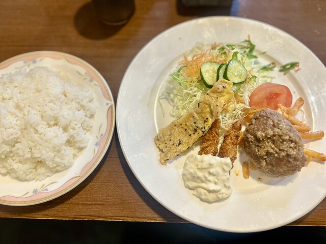 『주말 한정!! 호화 디너★』TV 방송으로 화제가 된 더블 햄버거 스테이크 세트★3400엔→3000엔6품