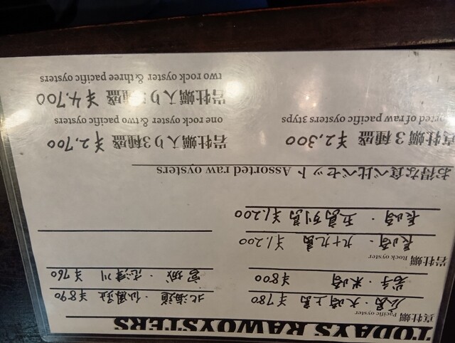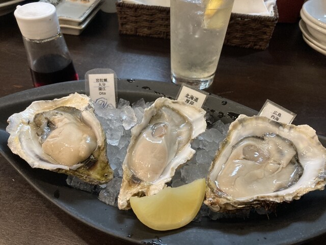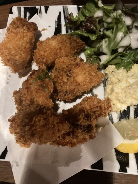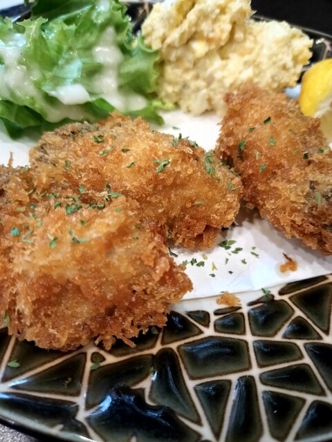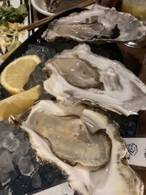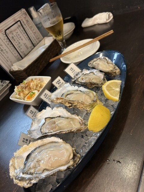 제철의 굴, 구운 굴, 굴 튀김 등 다양한 굴 요리를 즐겼습니다. 금요일 저녁에 방문했지만 손님이 드물어서 들어가기 쉬웠습니다. 혼자서 운영하는 시간에는 요리 제공에 조금 시간이 ...