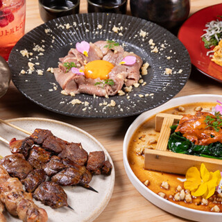 히로시마의 명물과 식재료를 활용한 변형 메뉴◎히로시마만의 다양한 음료도 준비되어 있습니다! 특별한 공간에서 즐기세요.