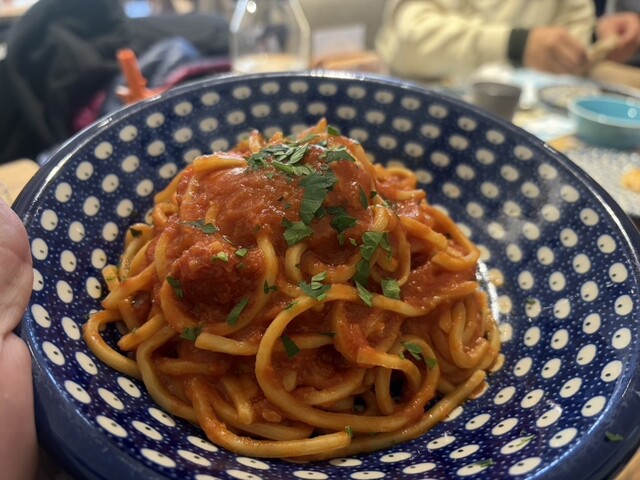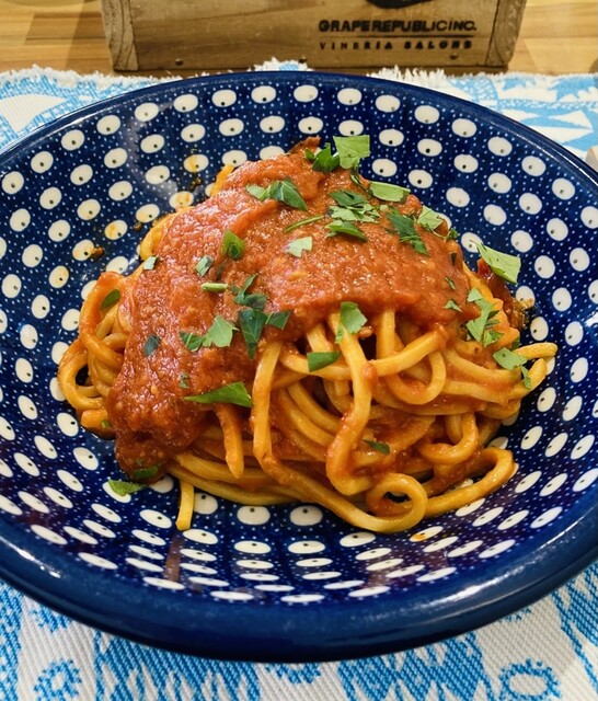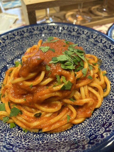 빵과 파스타 모두 수제라고 해서 매운 토마토 ...