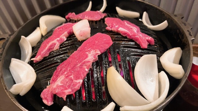 신선한 생양고기를 사용한 징기스칸을 만끽하세요