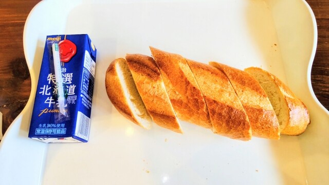 프랑스빵(하프)과 우유를 주문했습니다.