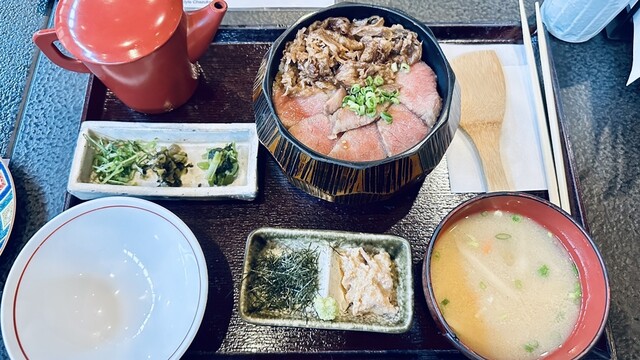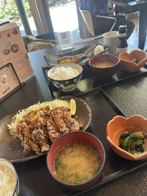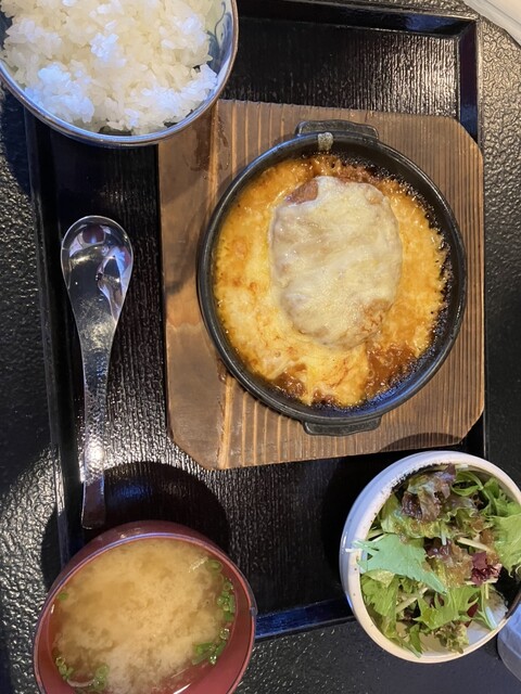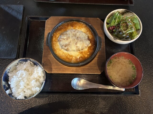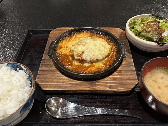 근처에 있는 톤보노유에 들어간 후, 이 레스토랑에서 식사를 했습니다. 저는 이번에 미소 조림 치즈 함박 정식을 주문했습니다.