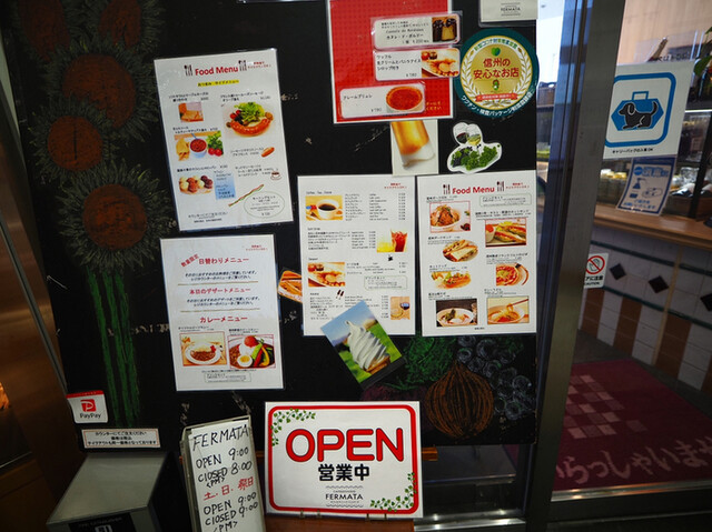 전품 테이크아웃 가능! 가루이자와역 내에 위치한 카페 & 다이닝 페르마타입니다. 운영 시간은 9:00부터 21:00까지입니다. 가루이자와 모닝부터 점심, 저녁까지, 푸짐한 식사, 카레, 샌드위치 같은 간단한 음식, 음료, 주류까지 다양하게 준비되어 있습니다. 반려견 동반도 가능하며, 카페로도, 가벼운 술 한 잔으로도 편리하게 이용하실 수 있습니다. 만남의 ...장소로도 최적입니다. 역 앞의 버스 터미널과 택시 승강장도 바로 앞에 있습니다.