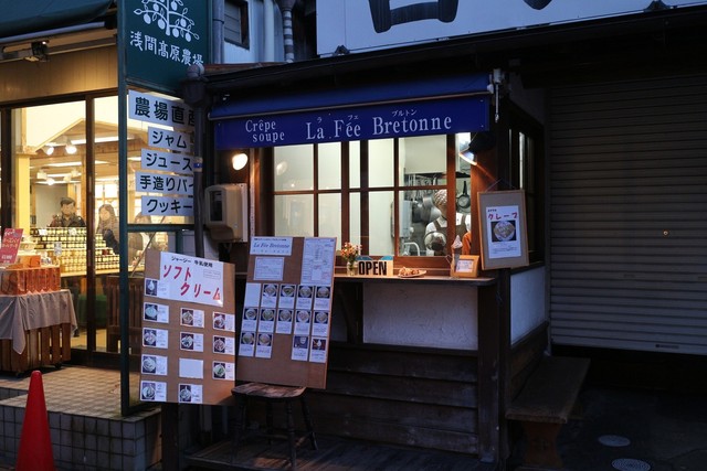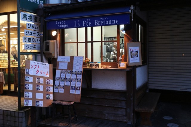 골동품 가게 입구에 있는 작은 크레페 가게입니다.