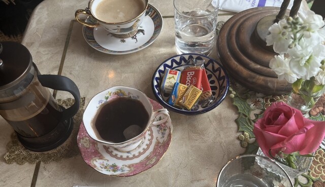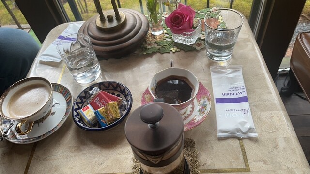 초콜릿과 쿠키가 함께 나왔고, 프렌치 프레스를 이용하여 커피를 만들어 주셨습니다. 컵 2~3잔 분량 정도였습니다.