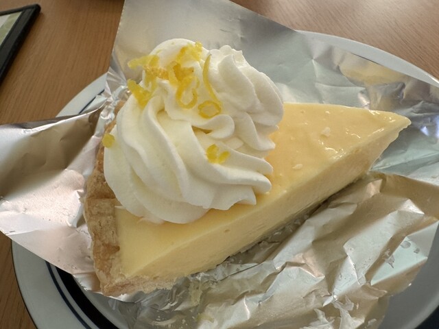 레몬 크림 파이의 크림 부분은 푸른 푸른하게 젤리 같았어요. 맛있습니다.