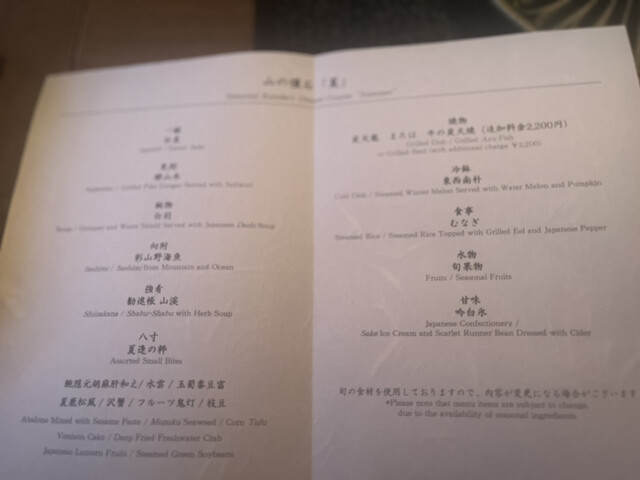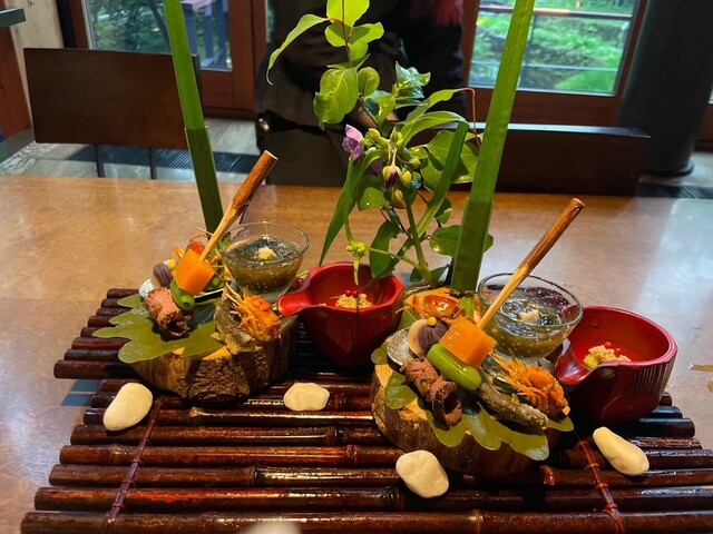 미소가 가득한 편안한 요리 "산의 가이세키" 바쁜 일상을 잊고 자연 속에서 여유로운 시간을 느껴보세요. 계절을 느낄 수 있는 재료와 산과 강의 요리로, 즐거움과 약간의 놀라움이 있는 저녁 식사로 고객을 맞이합니다. |