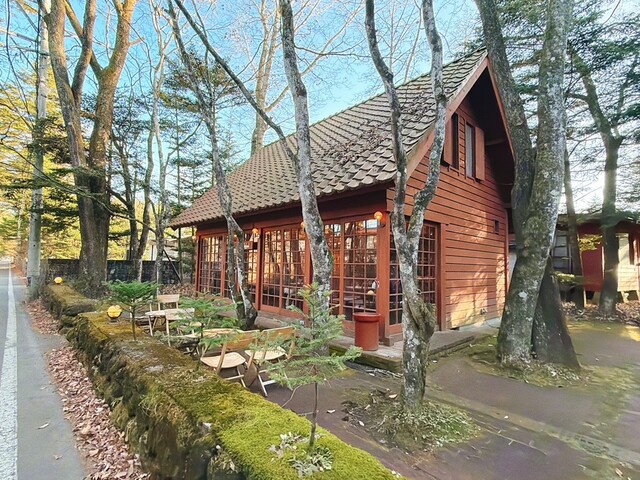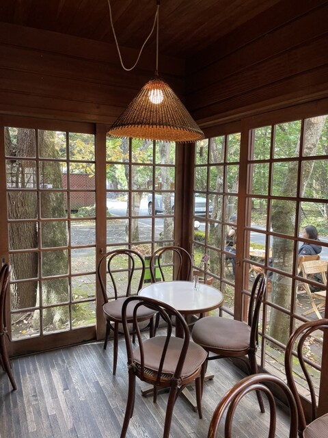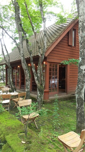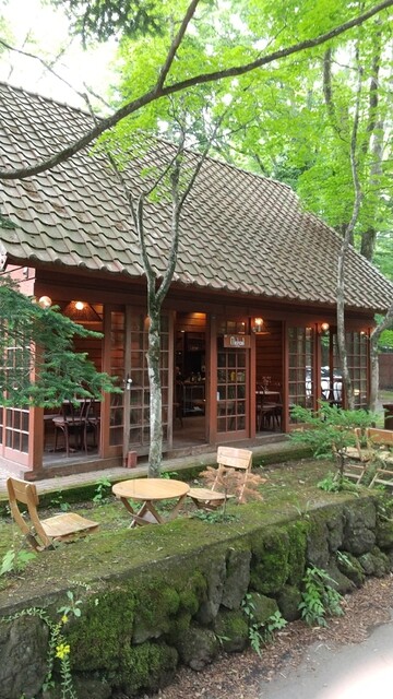 녹음이 우거진 분위기의 좋은 카페입니다. 가루이자와역에서 북쪽으로 올라가, 시노노메 교차로(인기 중식집 "만리"가 있는 교차로)를 좌회전하면 구룸바 호수 거리에 있습니다.