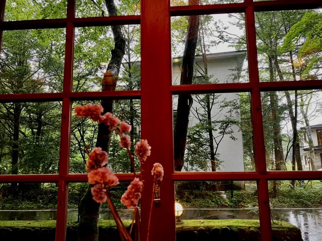 가루이자와의 카페! 초록으로 둘러싸인 카페입니다.