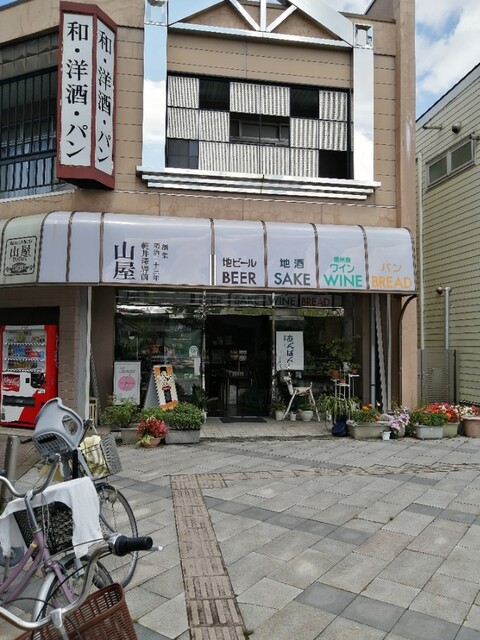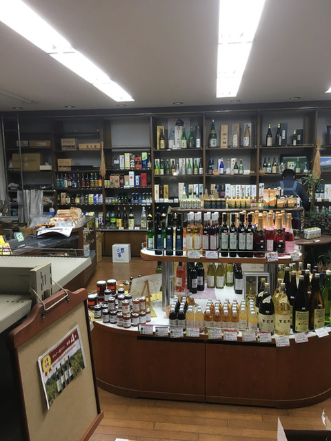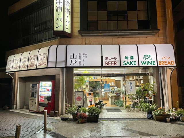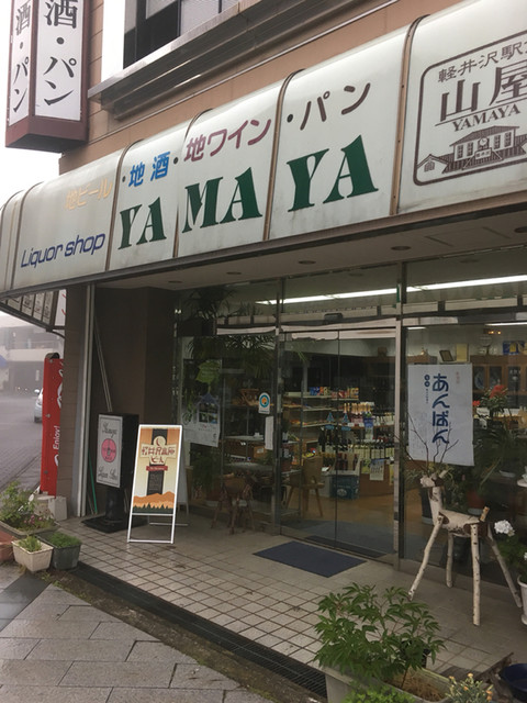 호쿠리쿠 신칸센・시나노 철도선의 가르이자와역 북쪽 출구 앞에 있는 주류 가게입니다.