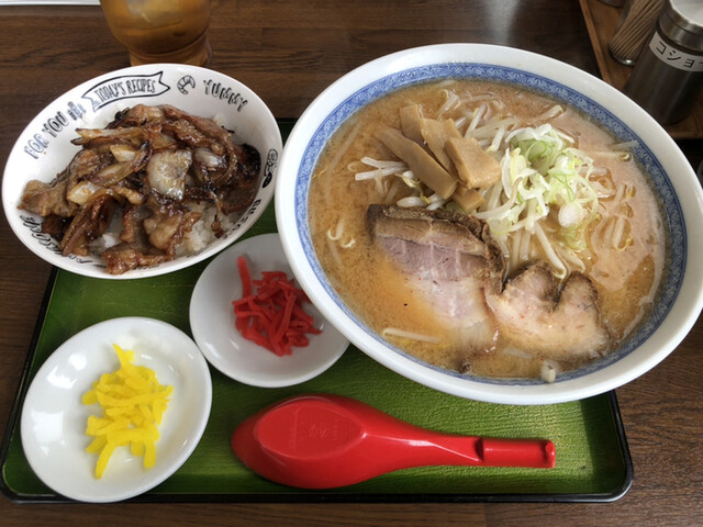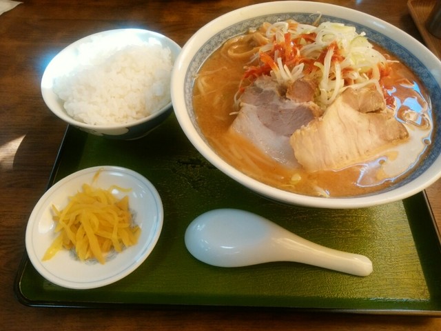 A 세트의 미소 라면을 먹었습니다. 옛날식 미소 라면으로, 적당한 미소의 신맛을 느낄 수 있는 국물입니다. 토핑된 차슈는 부드럽고, 반 볶음밥은 그릇 1컵 정도 되어 먹는 재미도 ...