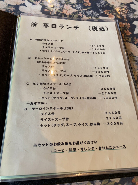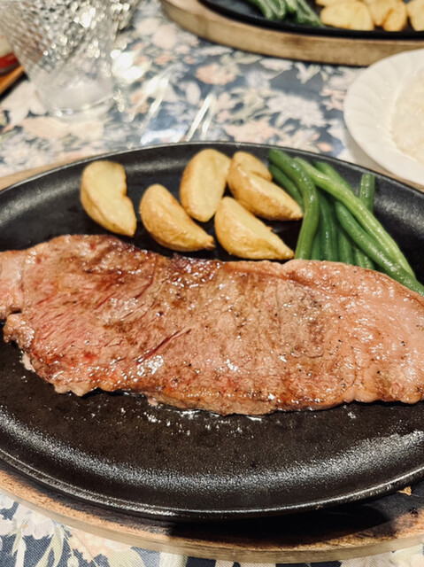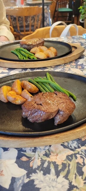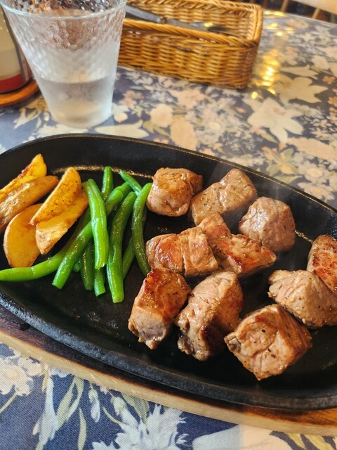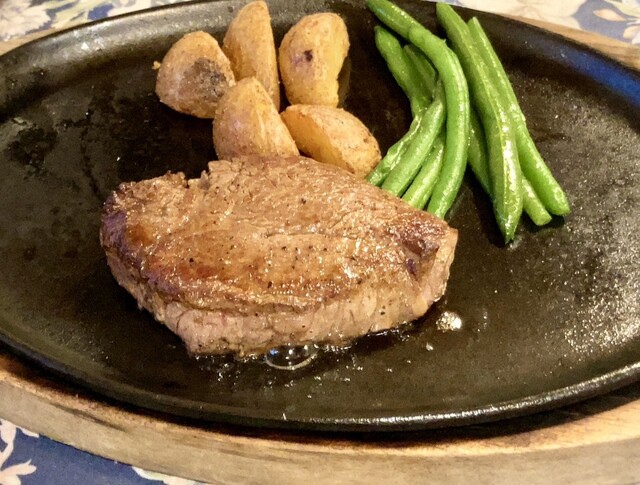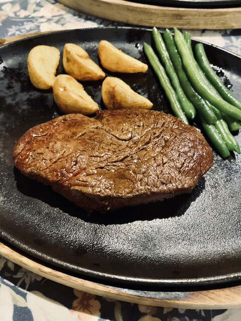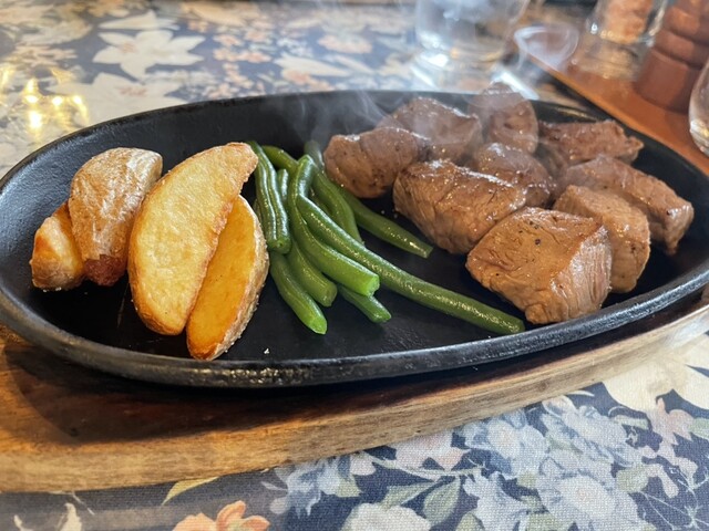 맛있는 스테이크를 먹고 싶어서 방문했습니다. 샤토 브리앙(150g) 3,600엔, 신주 알프스 소고기 텐더 각절 스테이크(130g) 4,600엔. 미디엄 레어를 양파 소스, 소금,...