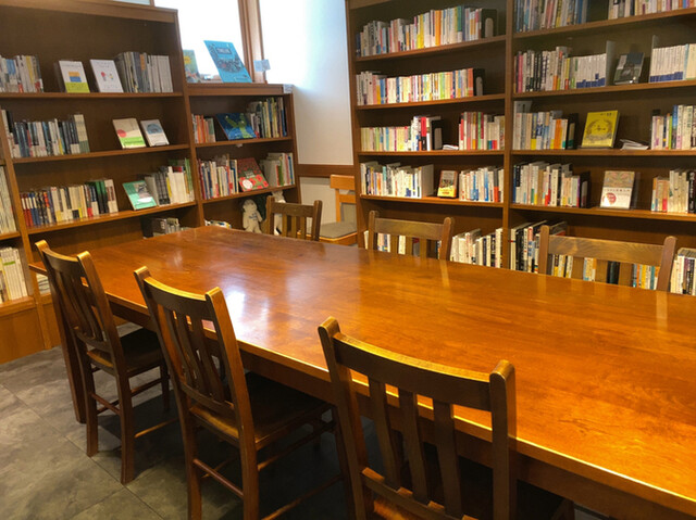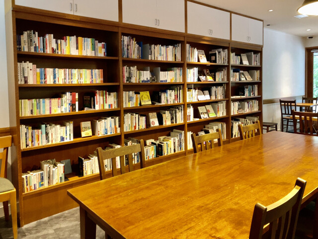 책장에 둘러싸인 매장 내 큰 테이블 1(by ピンクサファイア♪)
