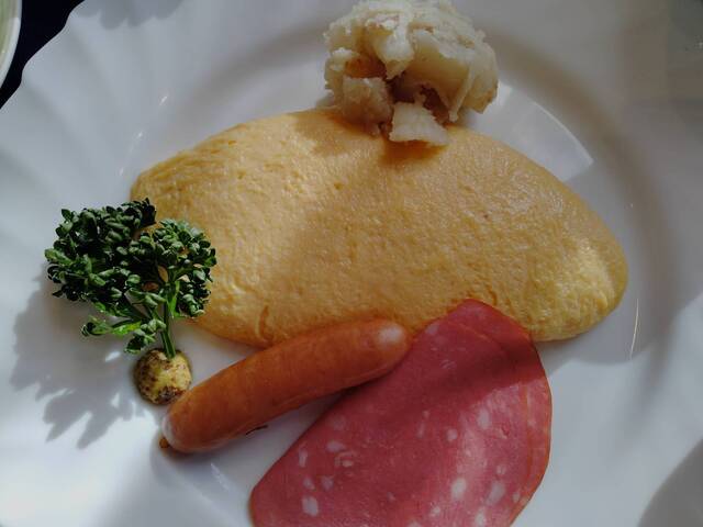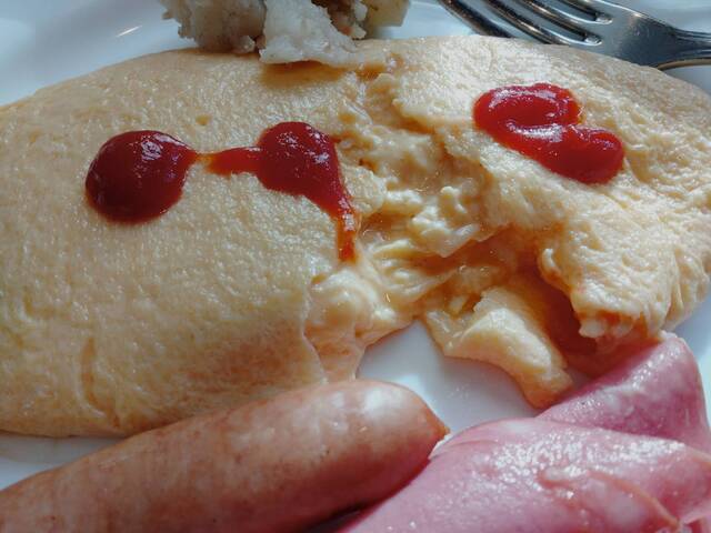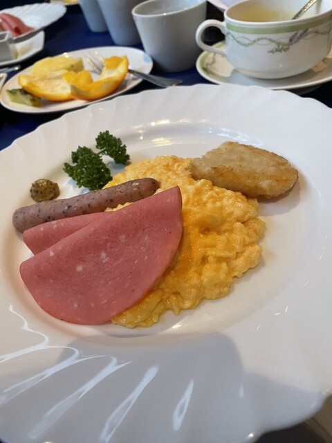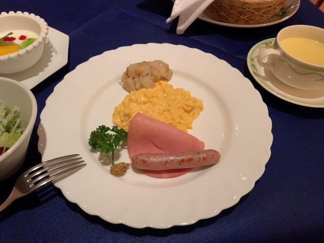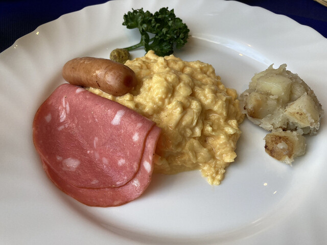 호텔 숙박 시 아침 식사입니다. 계란은 오믈렛과 고민하다 스크램블 에그로 선택했습니다. 소시지와 매우 화려한 색의 햄도 함께 나왔습니다. 전형적인 양식 아침 식사...자세히 보기