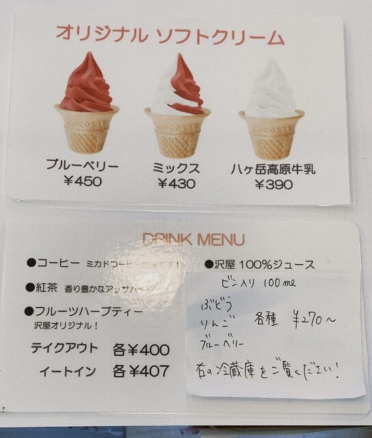沢屋直営 레스토랑 "코도우"의 카페 공간 "코도우 테라스"로 리뉴얼 오픈! 인기 메뉴인 "구 경카르이자와의 피로시키", 국산 과즙 100% 블루베리 소프트, 야가타케 고원 우유 소프트 외에도 HARIO의 주방 및 카페 용품, KURAKIN의 "노코리 염색", 우에노촌의 목공품 등 다양한 잡화도 판매 중입니다....