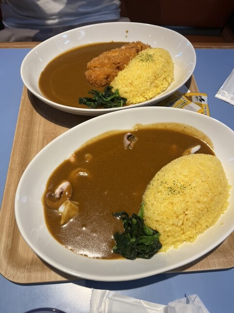 셀프 식권 형식의 카레 가게! 현금을 가지고 있어서 다행이었어요. 일반 사이즈라도 이 양은 정말 배부르게 됩니다. 해산물도 생각보다 많이 들어 있었고, 후쿠진즈케도 개별 포장이라 ...