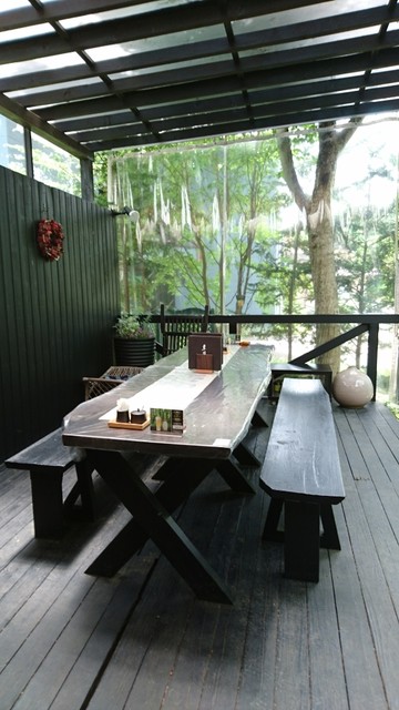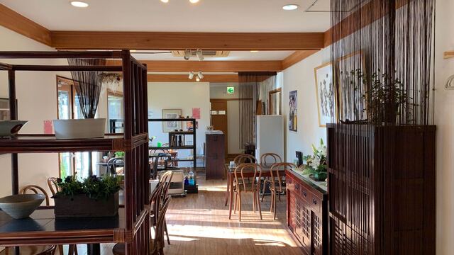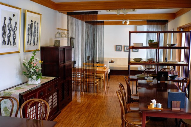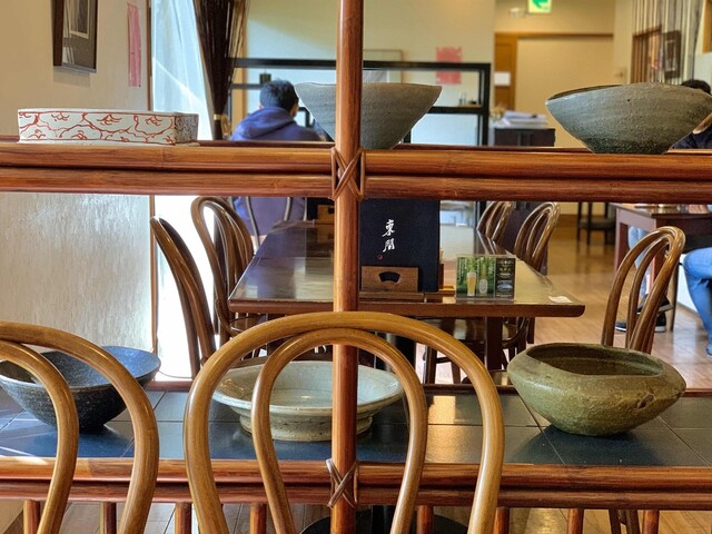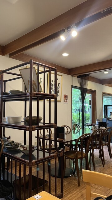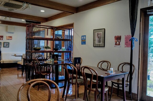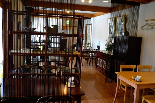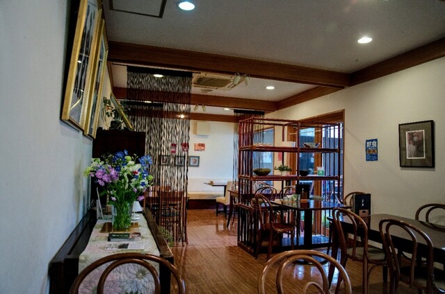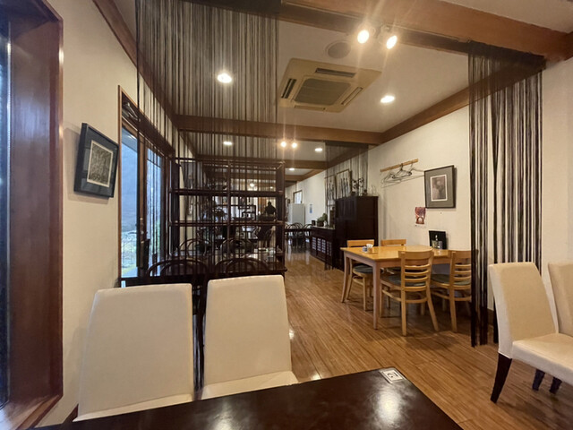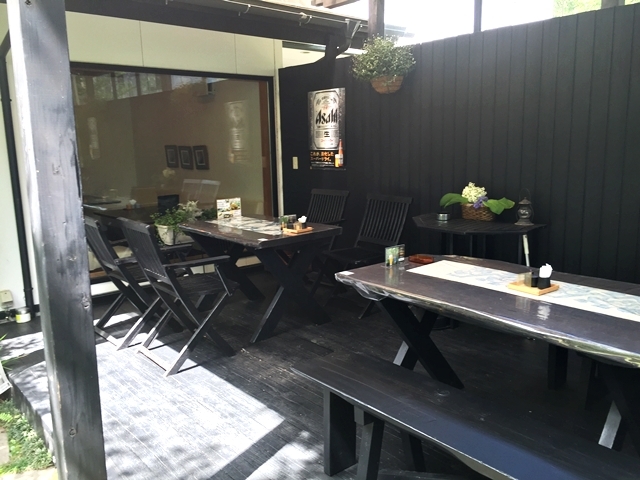56석 ( 실내는 4인용 테이블 6개, 6인용 1개, 일본식 방에 4인용 테이블 2개. 테라스에 4인용 테이블 3개, 6인용 테이블 1개) |