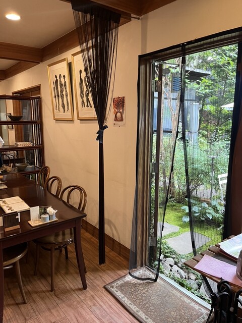 56석 ( 실내는 4인용 테이블 6개, 6인용 1개, 일본식 방에 4인용 테이블 2개. 테라스에 4인용 테이블 3개, 6인용 테이블 1개) |