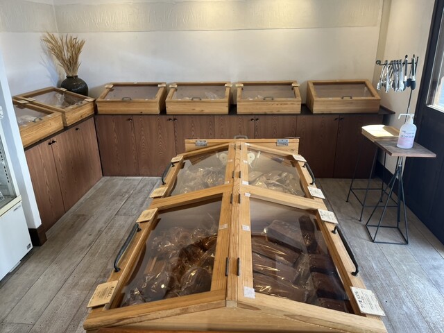 가게 내부는 세심한 배려가 가득한 공간으로, 빵이 가득 진열되어 있습니다.